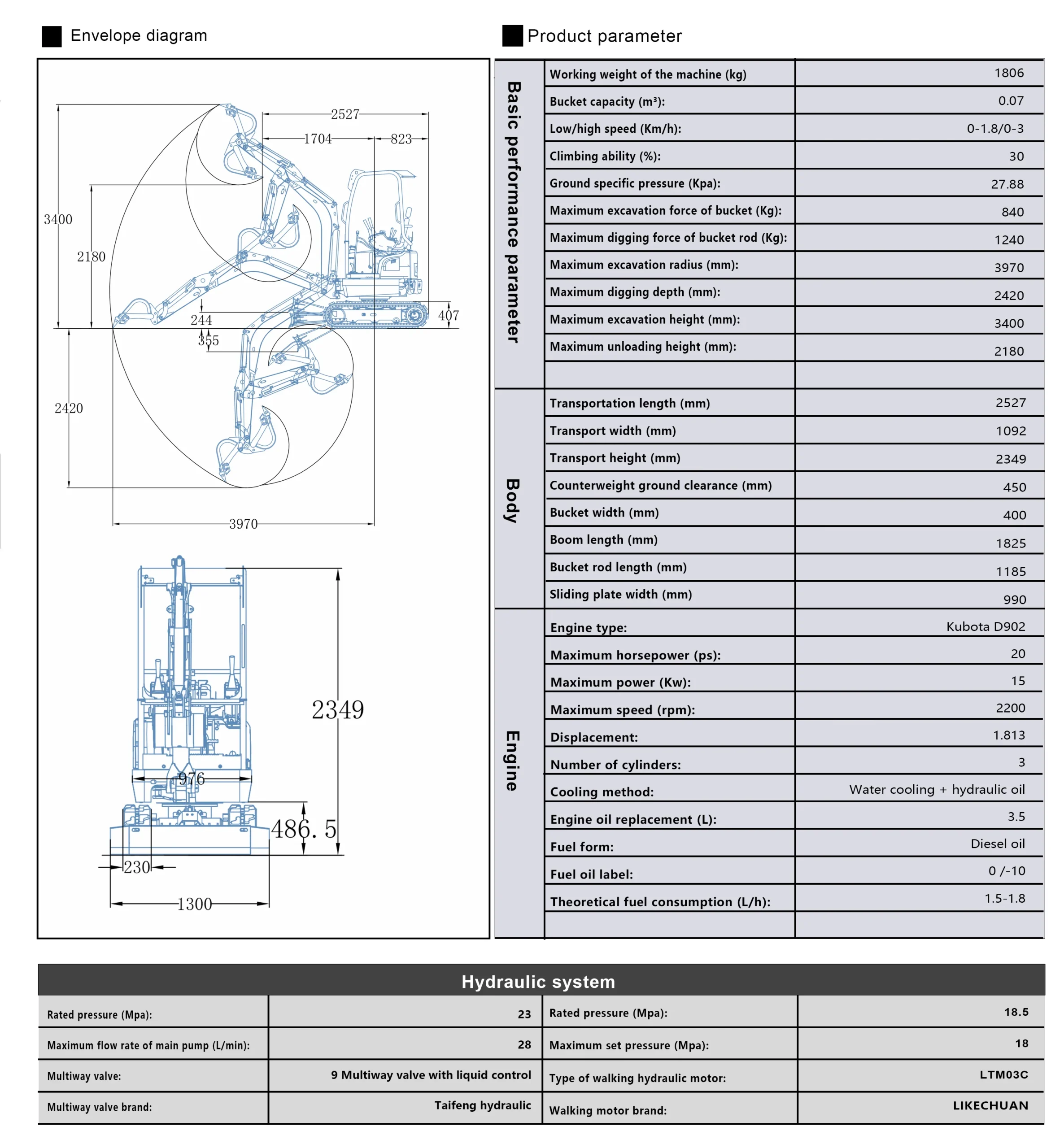 La R18 PRO est une mini-pelle puissante avec un poids utile de 1 806 kg, idéale pour les projets de construction exigeants. Avec une profondeur de fouille de 2,42 mètres et un puissant moteur diesel Kubota, il offre une efficacité et une précision maximales. Le choix parfait pour les professionnels qui apprécient la fiabilité et la polyvalence.